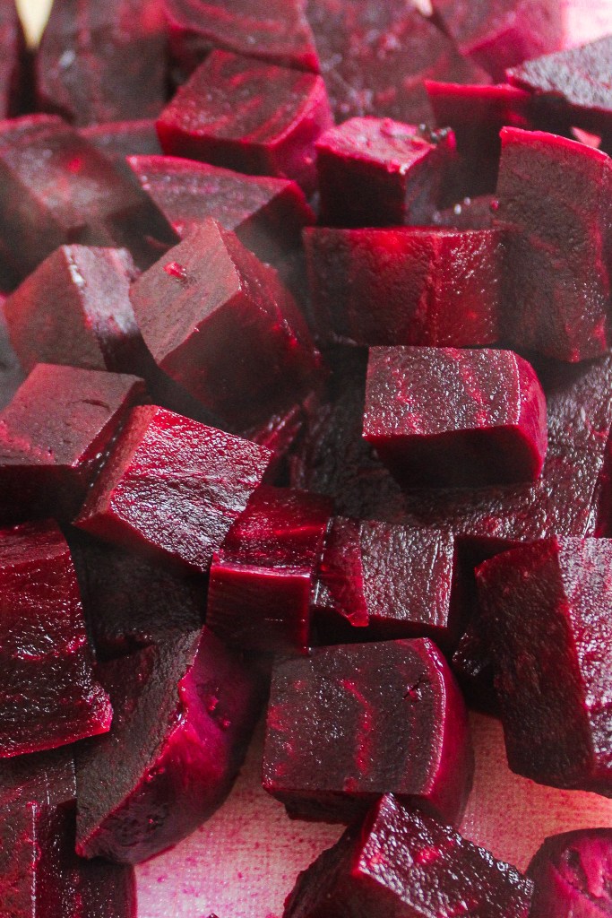 1. Thoroughly scrub and rinse the beet under water and place it in a saucepan. Cover the beet with water and bring to a boil, then turn down the heat to medium and simmer for 45-60 minutes until fork tender. Strain the beet and set aside to cool.
