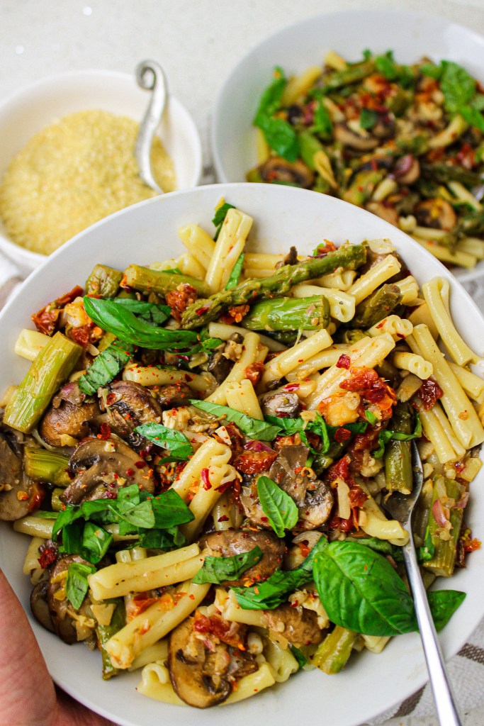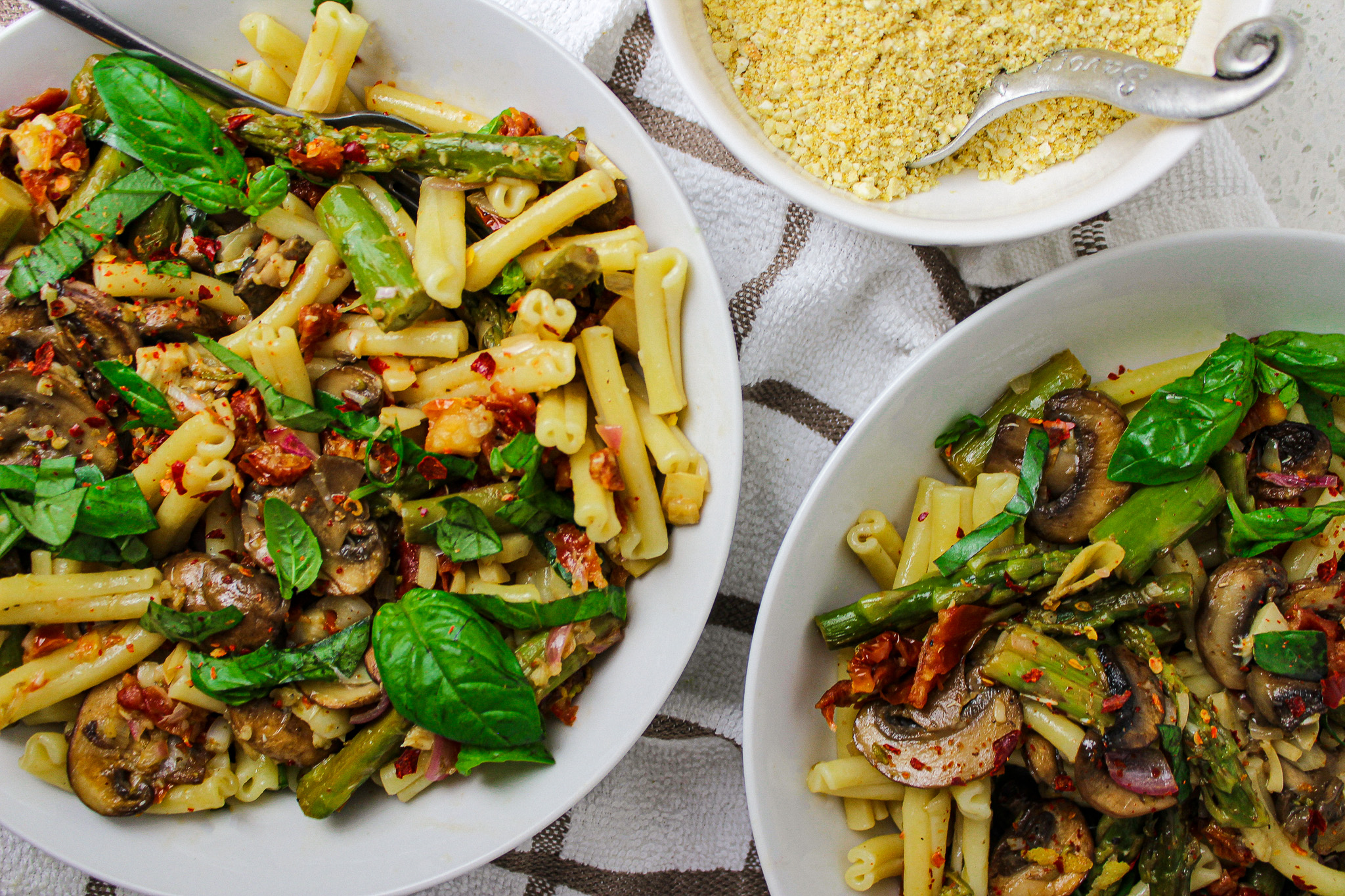 Vegan Spring Pasta with Asparagus & Mushrooms