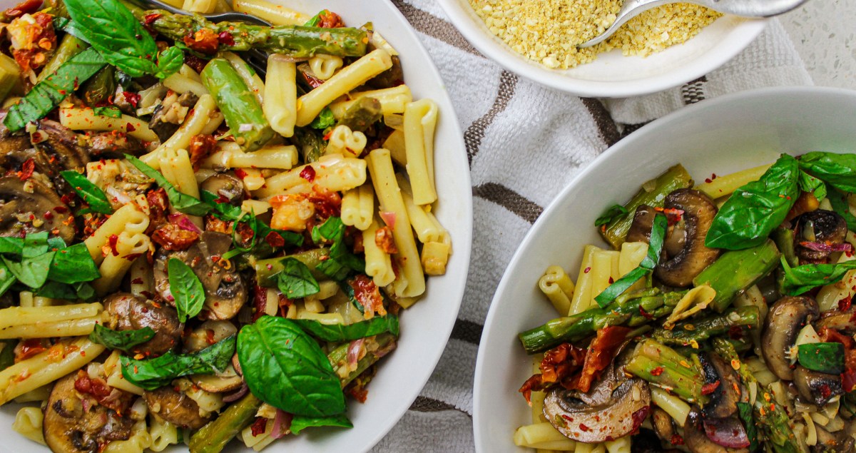 Vegan Spring Pasta with Asparagus & Mushrooms
