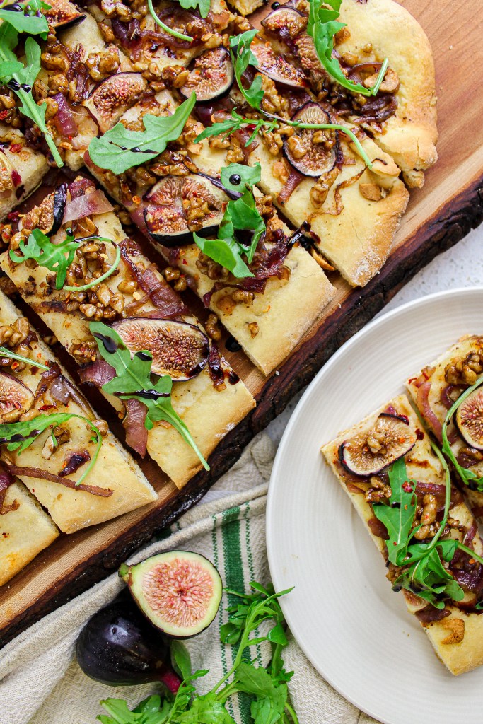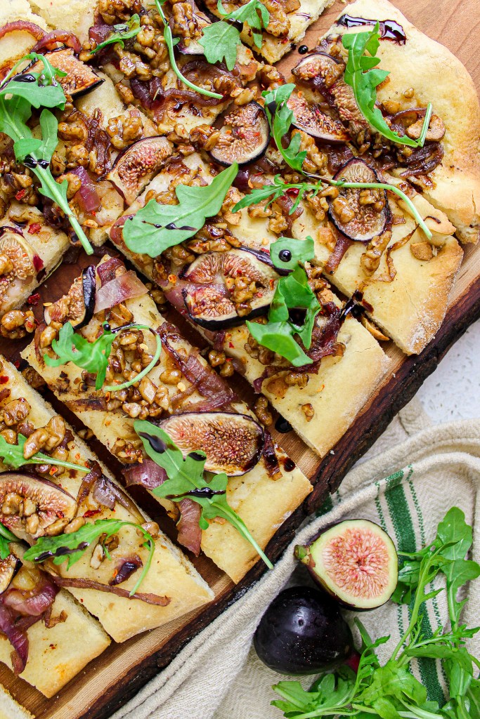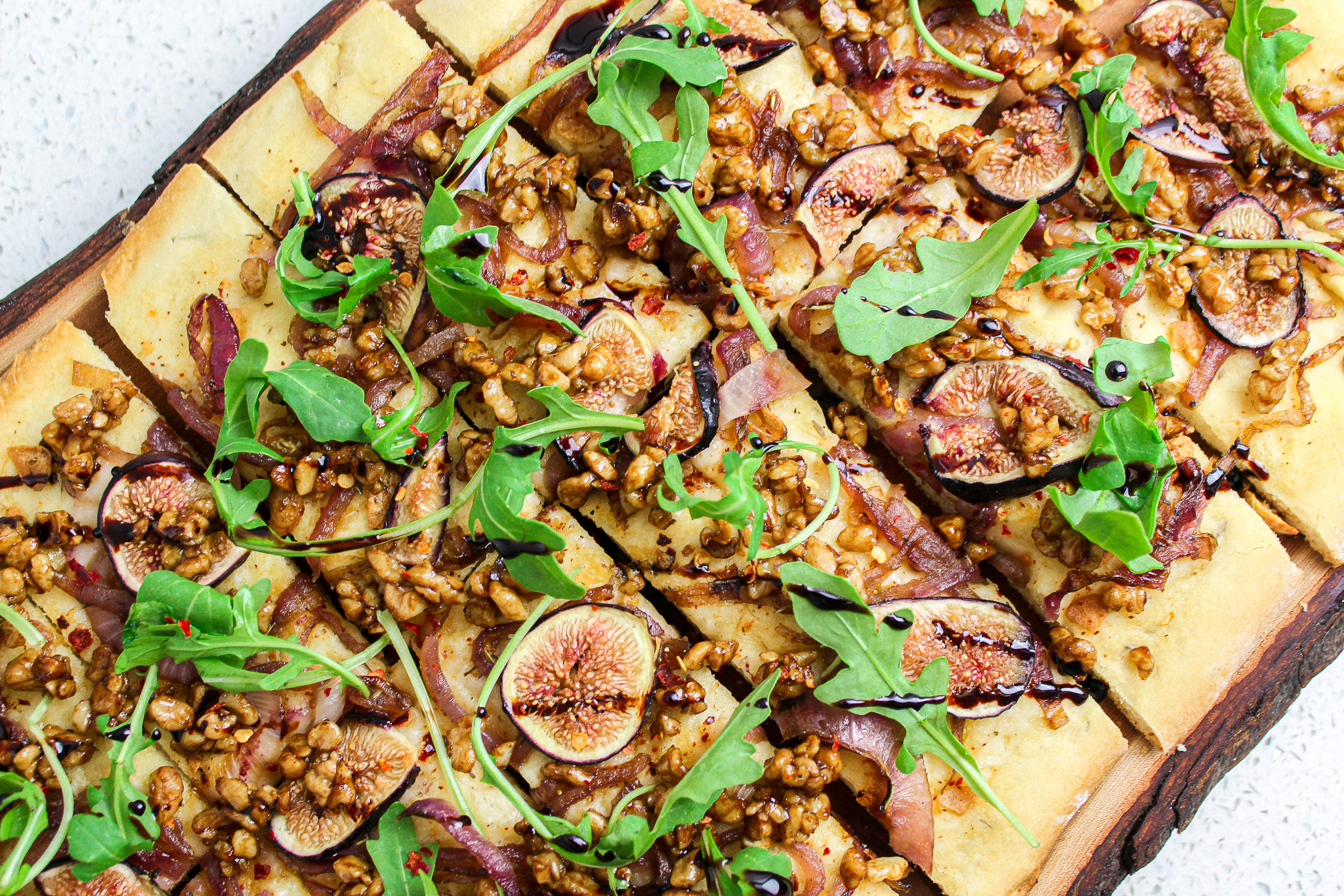 Balsamic Onion, Fig, & Smoky Walnut Flatbread with Homemade Herby Dough