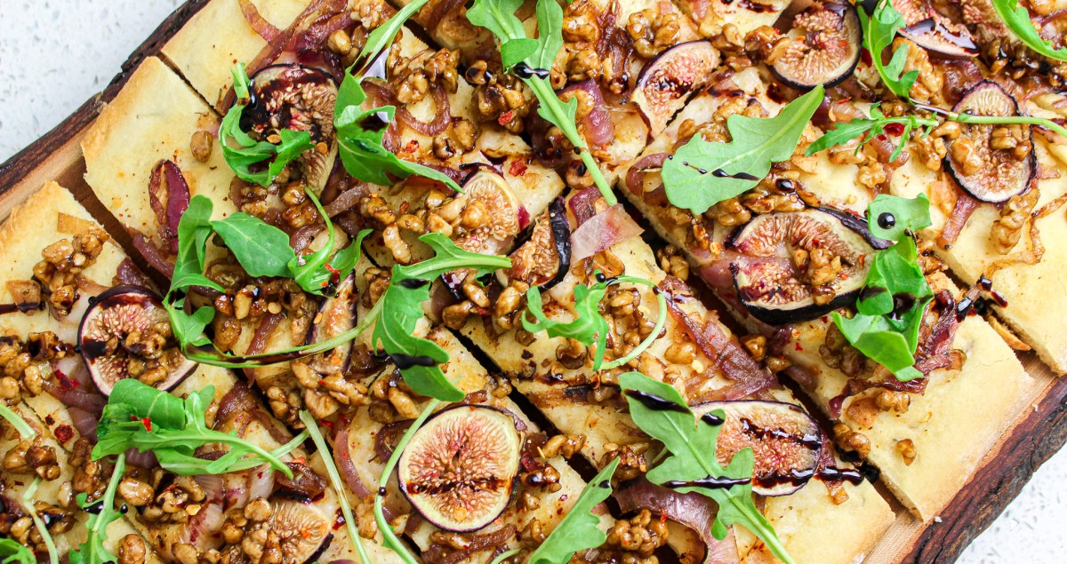 Balsamic Onion, Fig, & Smoky Walnut Flatbread with Homemade Herby Dough