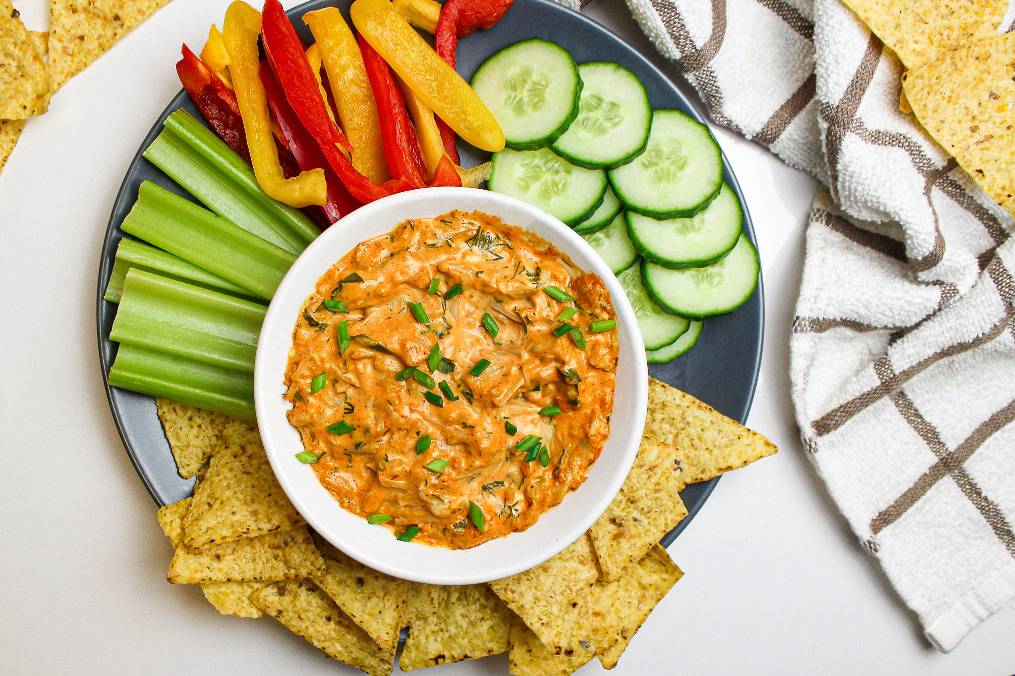 This buffalo jackfruit dip is easy to make, super creamy, and deliciously flavourful! It’s the perfect dip for entertaining family and friends and we’re sorry in advance for how addictive it is!