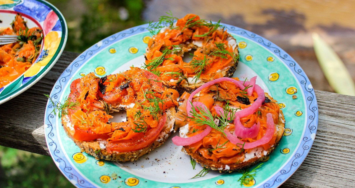 Get ready to completely elevate your brunch game with vegan smoked salmon on bagels. Made with carrots soaked in a smoky and savoury marinade, this recipe is simple and oh, so delicious!