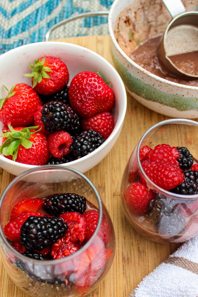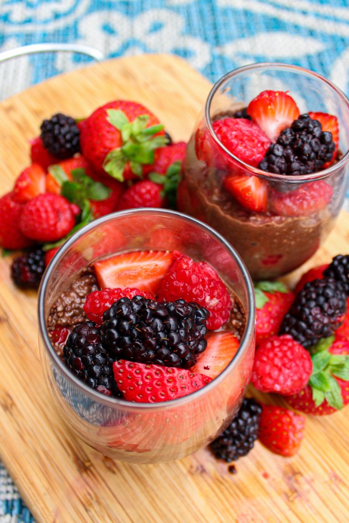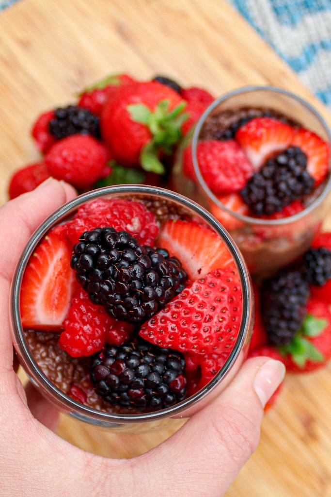 4. Before serving, add some more fresh berries on top of each chia pudding.