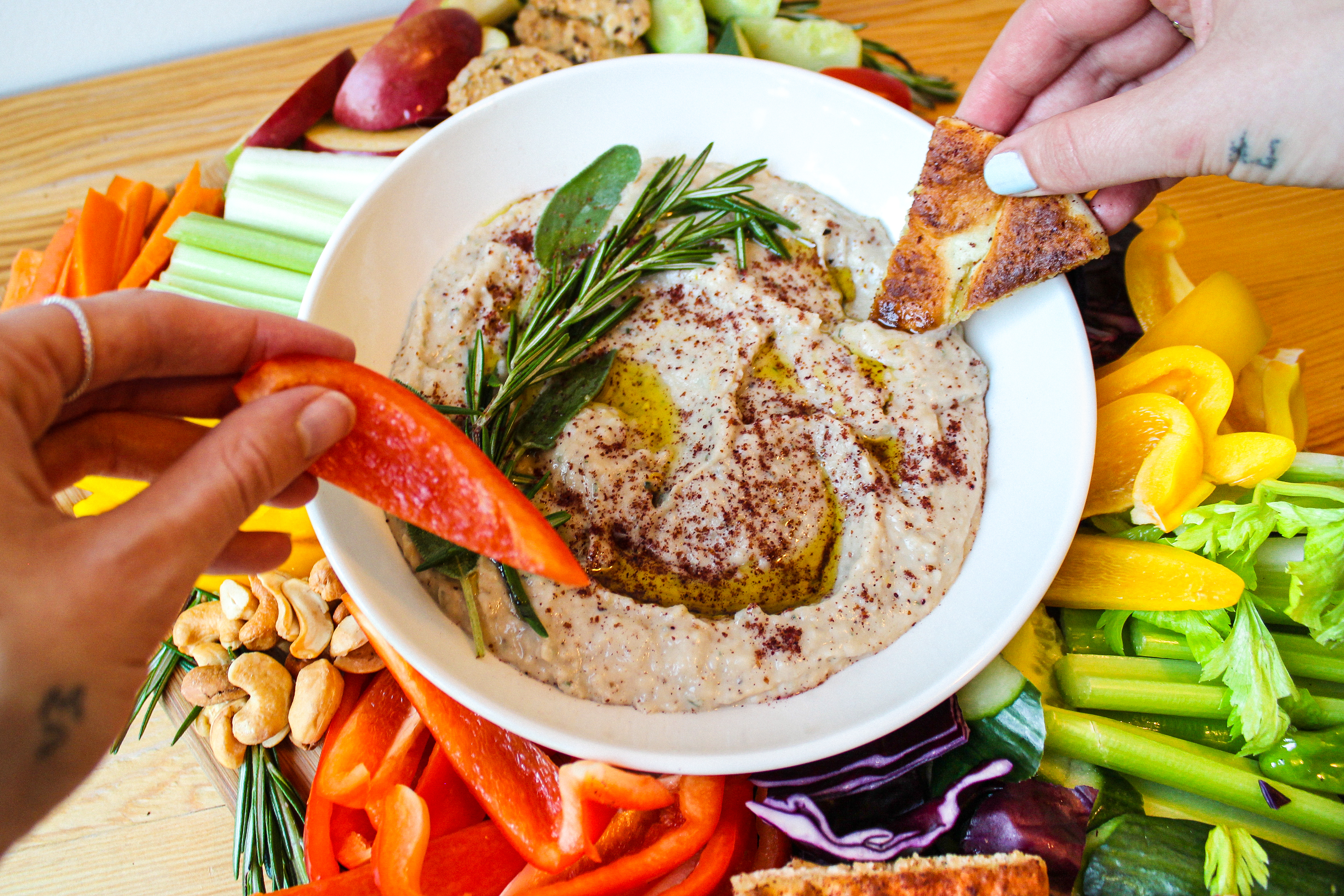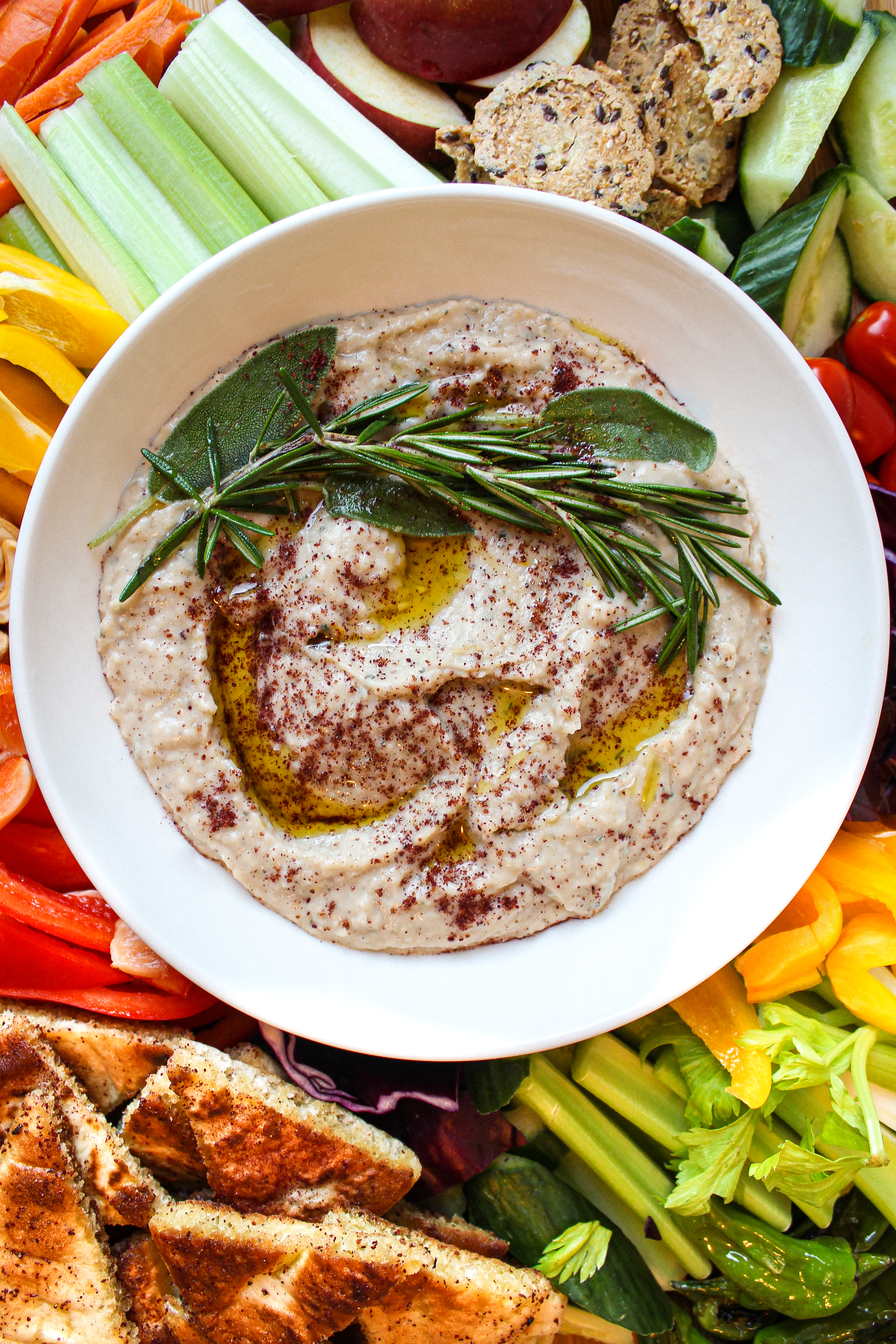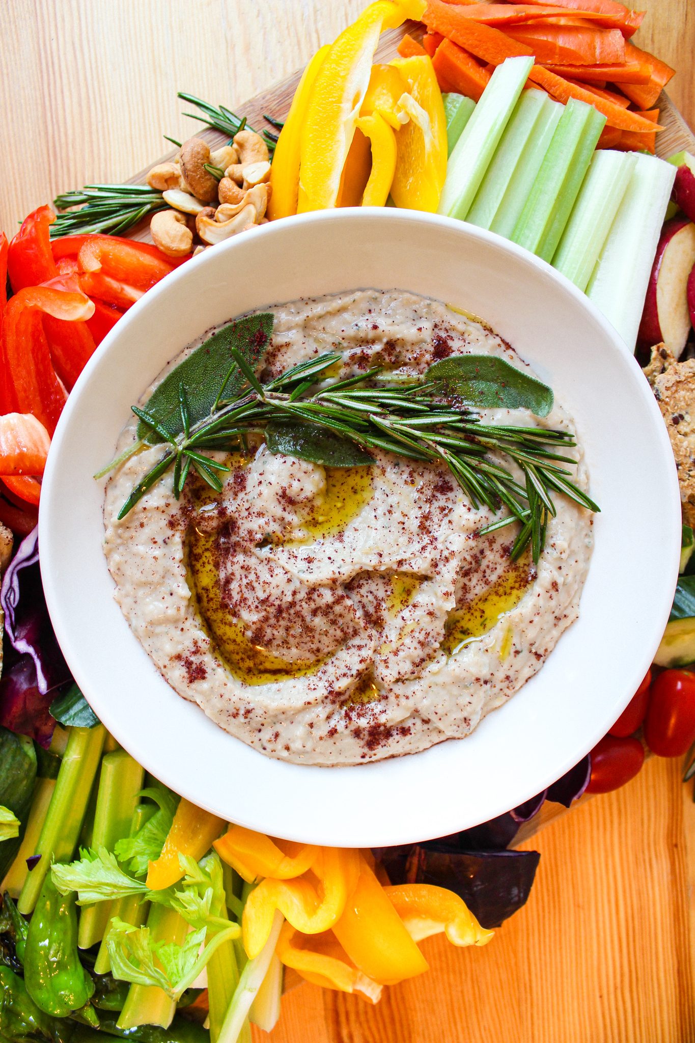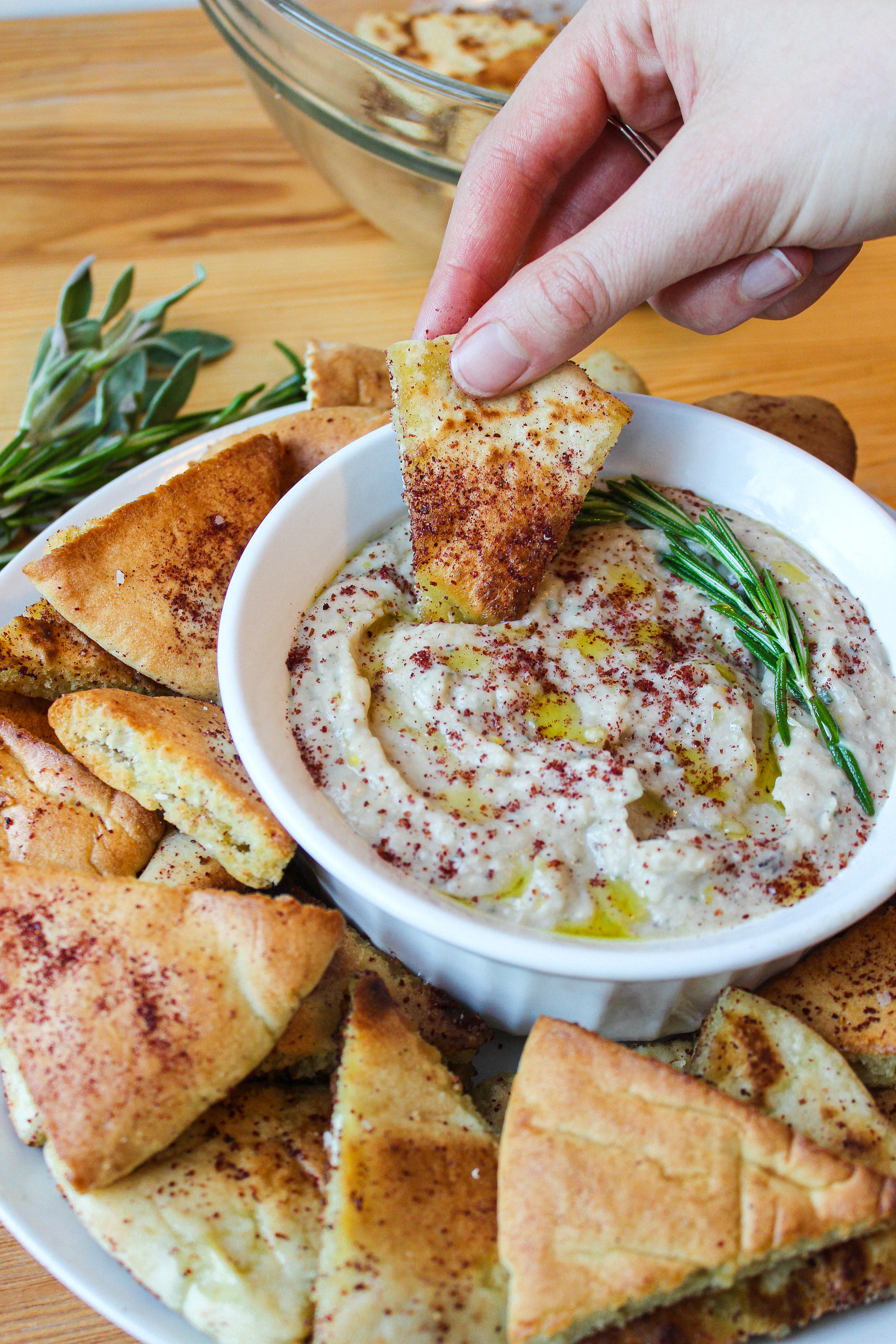 Cannellini beans, also known as white kidney beans, are the perfect base for this dip because although mild in flavour, they have a buttery taste and create the creamiest texture when blended up. They are also packed with fibre and protein, with 11 grams and 17 grams per cup, respectively. Adding the roasted garlic, onion and shallot (the triple threat of allium vegetables) provides complexity and a beautiful depth of flavour. We are a big flavour energy kind of girls, which is why we added two types of fresh herbs; rosemary and sage. We couldn’t stop there though, so we added dried garlic and onion, to really bring out the fresh-roasted flavours. Finally, to brighten up this dip and bring out all the delicious flavours, even more, we added a little lemon and sumac (learn more about sumac on other post- Sumac Pita Chips – Baked or Fried).