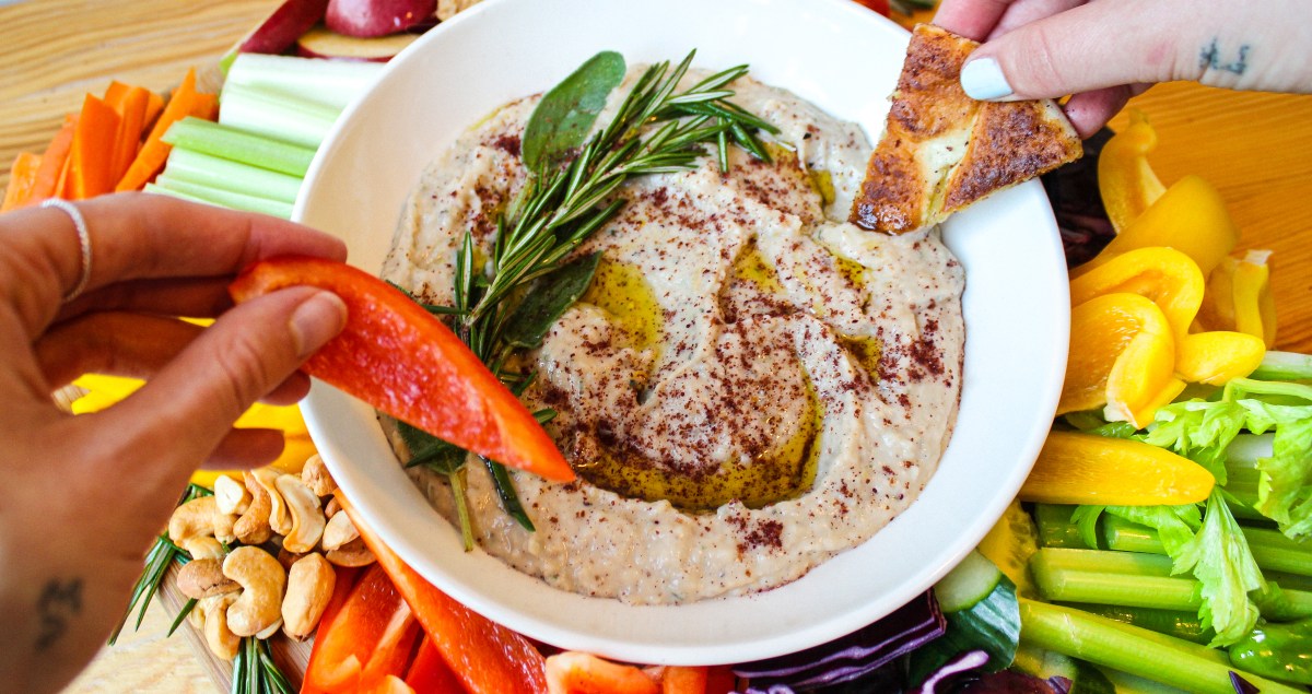The dip queens are back at it again, and you will not want to overlook this one! Our Roasted Shallot, Onion, & Garlic Bean Dip is nutritious and simple, while still being packed with a variety of flavours from fresh herbs and spices. It’s a delicious appetizer, especially when paired with our Sumac Pita Chips, and would serve as a great addition to your wraps, sandwiches, salads, and bowls. This dip is sooo good, and you’ll want to add it to practically everything!