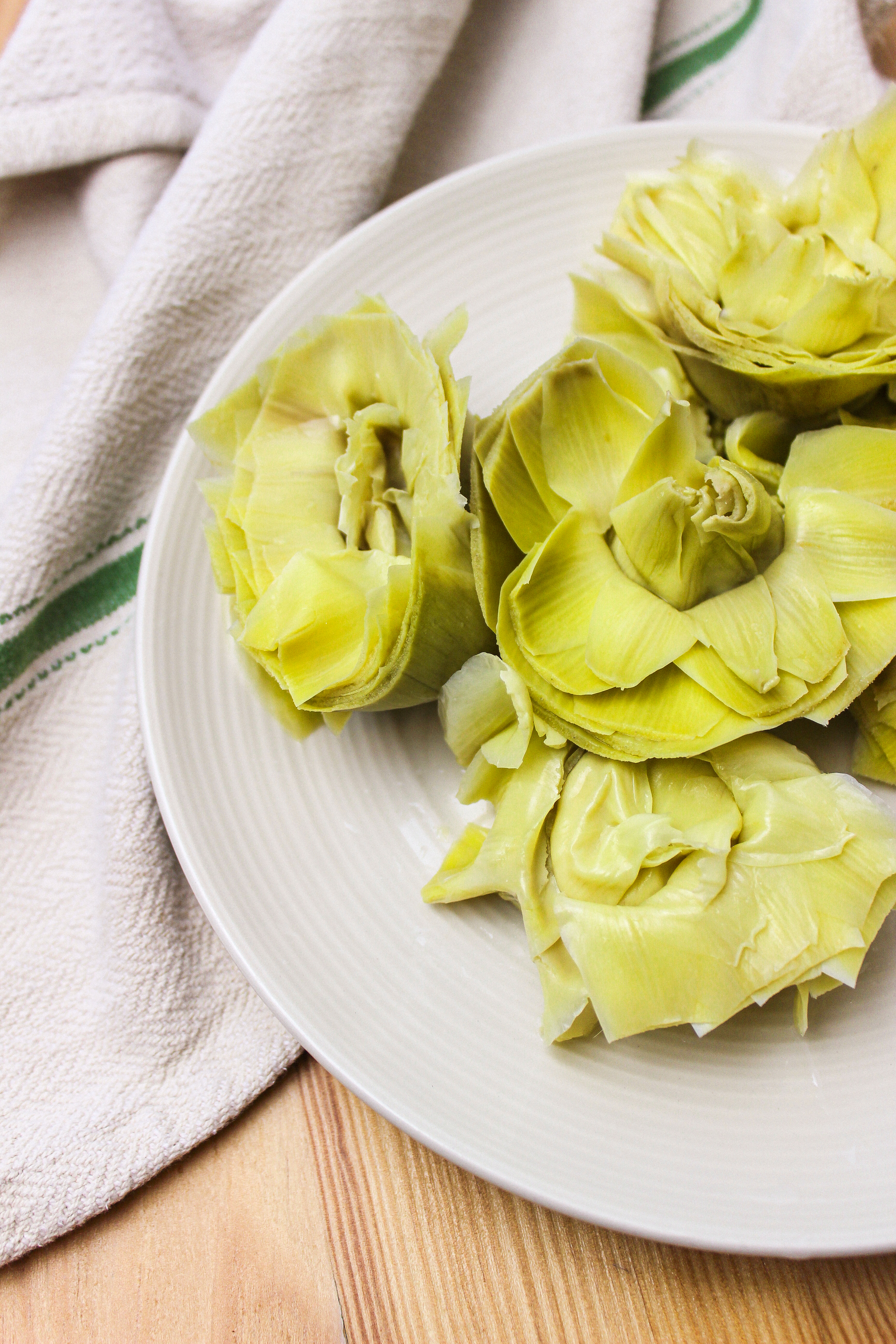 3. In a skillet or pan, add 1 tablespoon of butter over medium-high heat. Add chopped artichoke and chopped mushroom stems and cook for 5-6 minutes until there is no moisture left from the mushrooms. Add spinach and stir frequently until spinach is cooked down. Remove from the heat, transfer to a bowl and stir in the blended mixture. Set aside to cool.