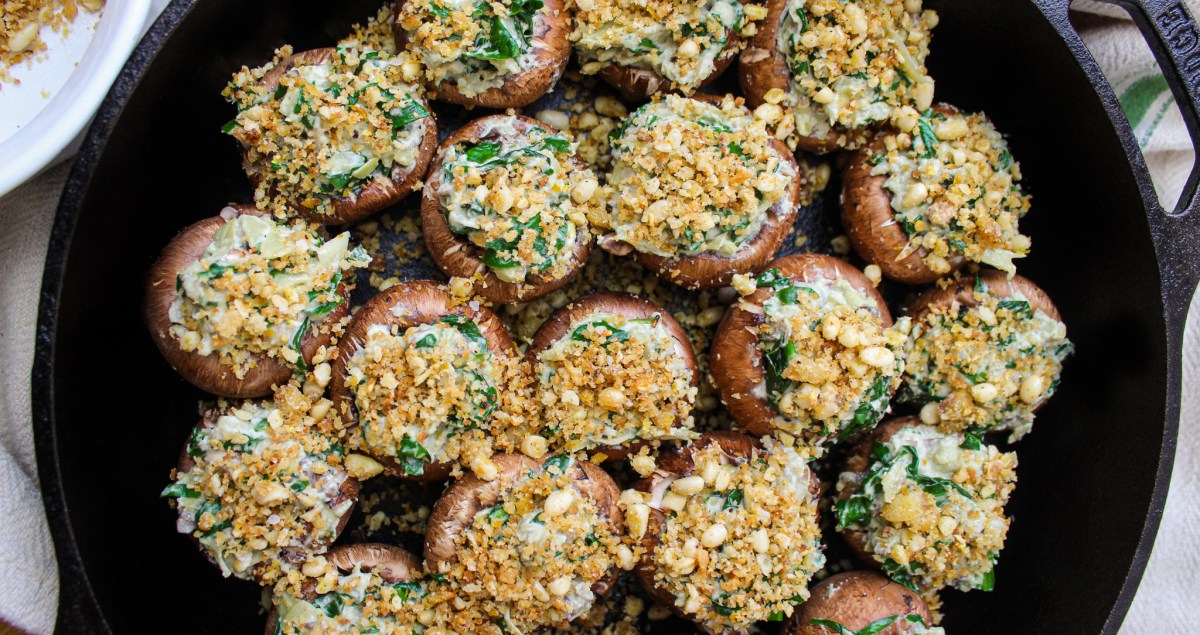Spinach and Artichoke Stuffed Mushrooms with Crispy Garlic Panko Topping