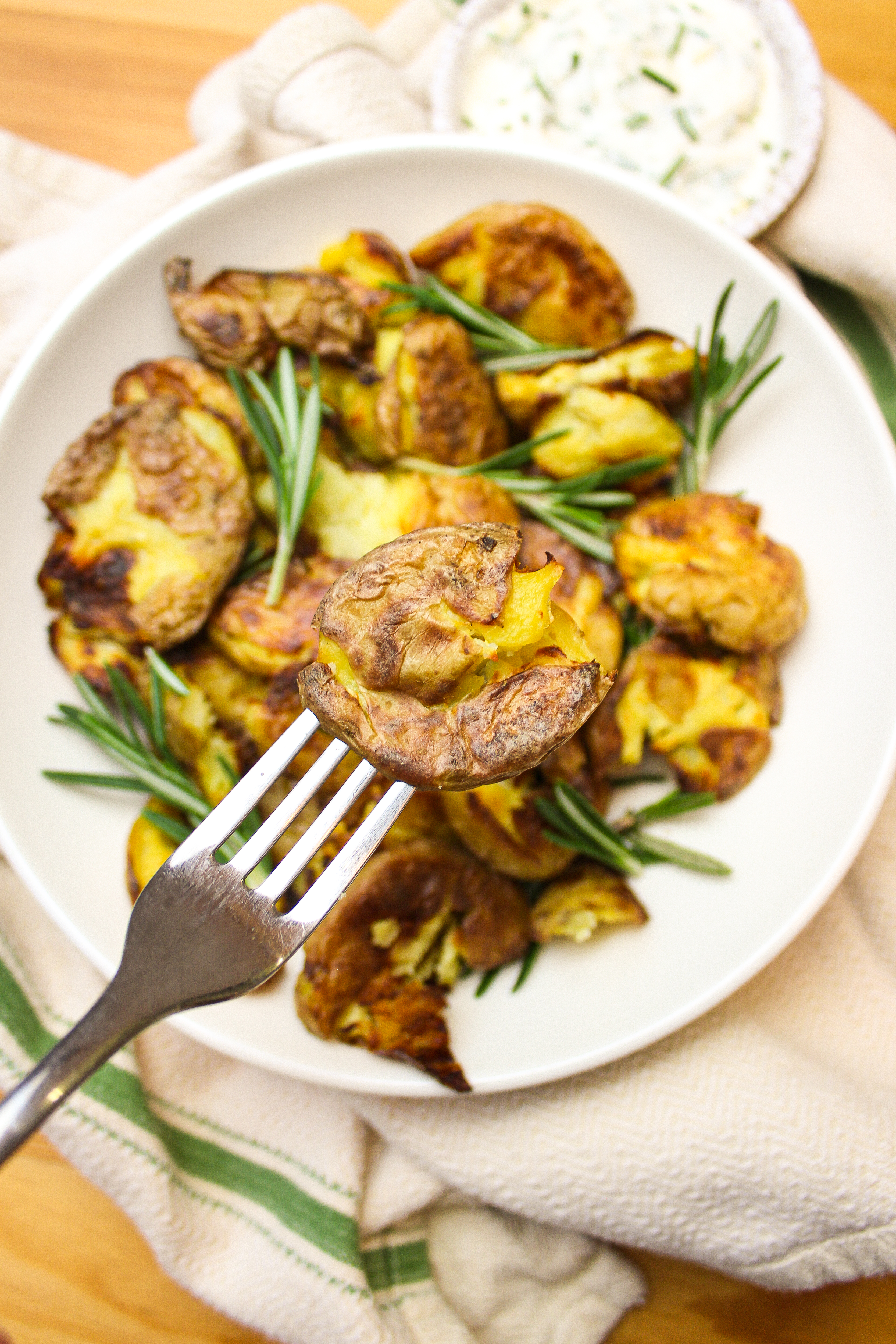 We’ve all had mashed, roasted and fried potatoes, but have you tried the smashed potato? Growing in popularity over the past few years, smashed potatoes are climbing the potato ranking and giving other methods a run for their money. Our Crispy Garlic and Rosemary Smashed Potatoes are made using simple techniques and minimal ingredients that create the ultimate side dish. With their crispy roasted exterior and fluffy, buttery interior, you will fall in love with smashed potatoes. Don’t forget to leave lots of room on your plate because you will be piling these taters on!