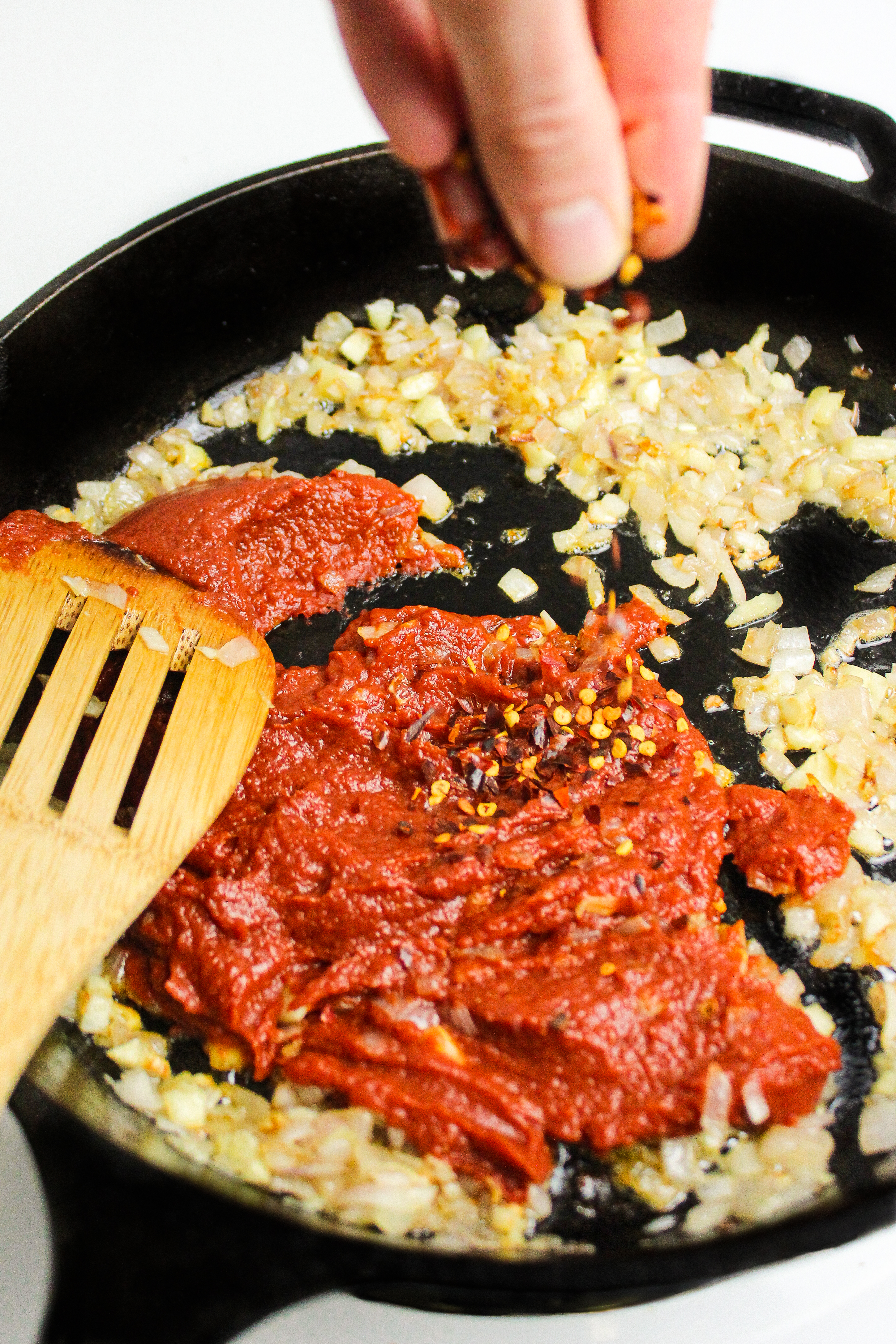 - Depending on your desired spice level, you may want to add additional red pepper flakes. We’ve chosen a level of spice that perfectly balances out the sweetness of the tomatoes and adds a little kick. Remember, you can always add more, but it’s harder to remove.