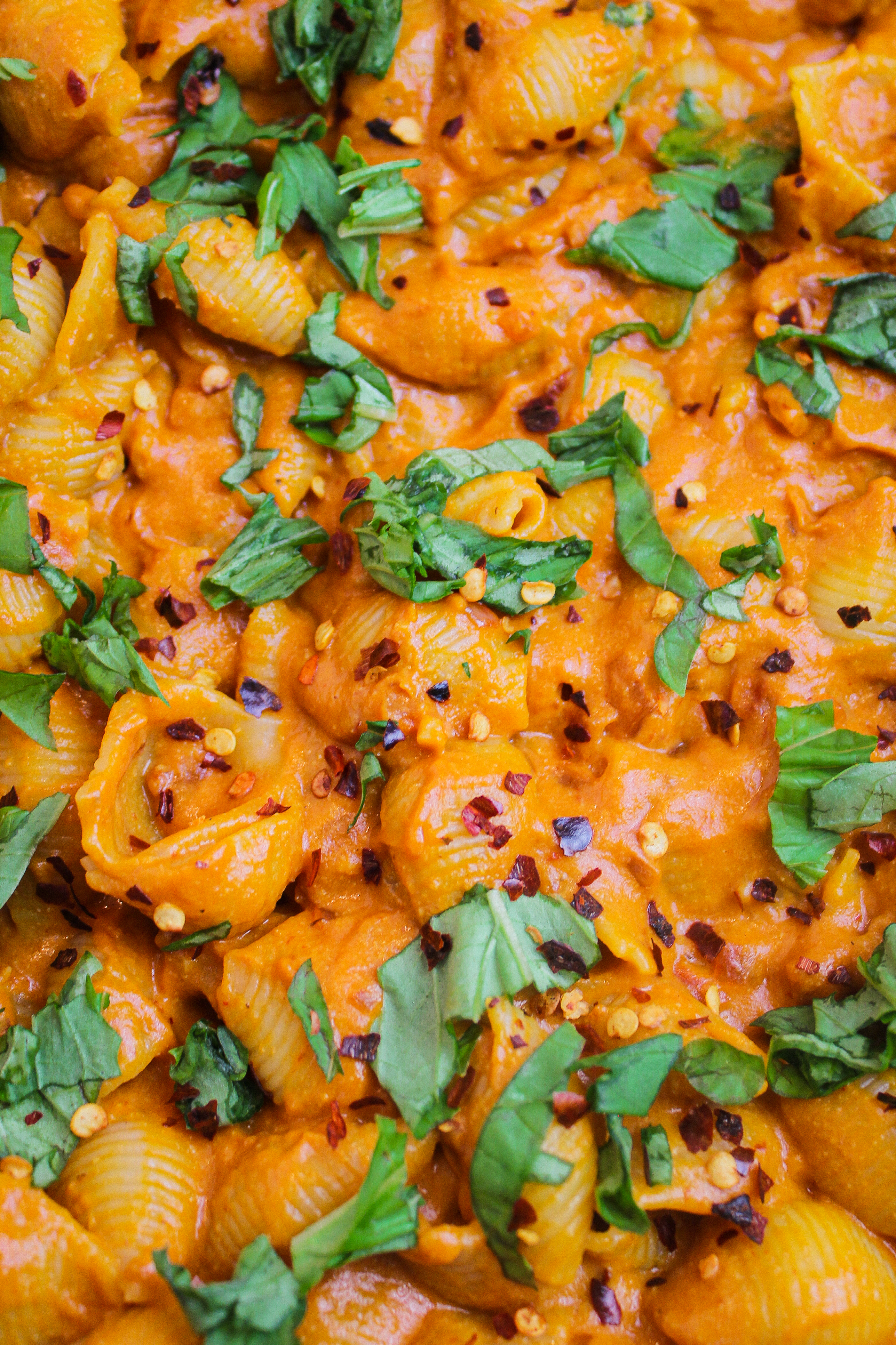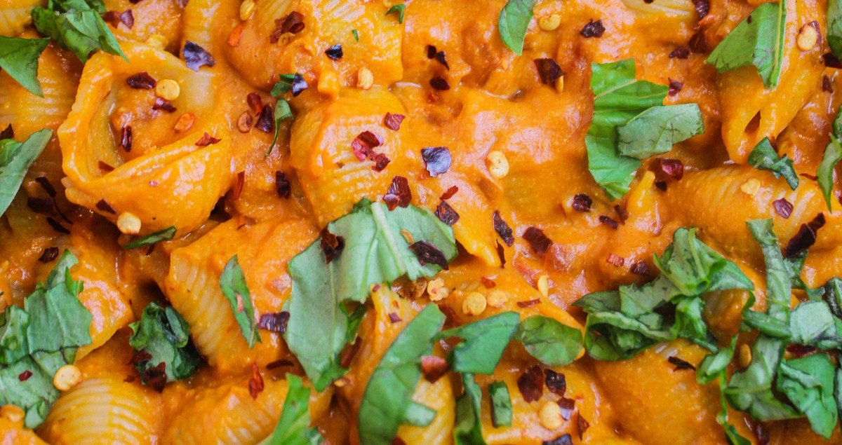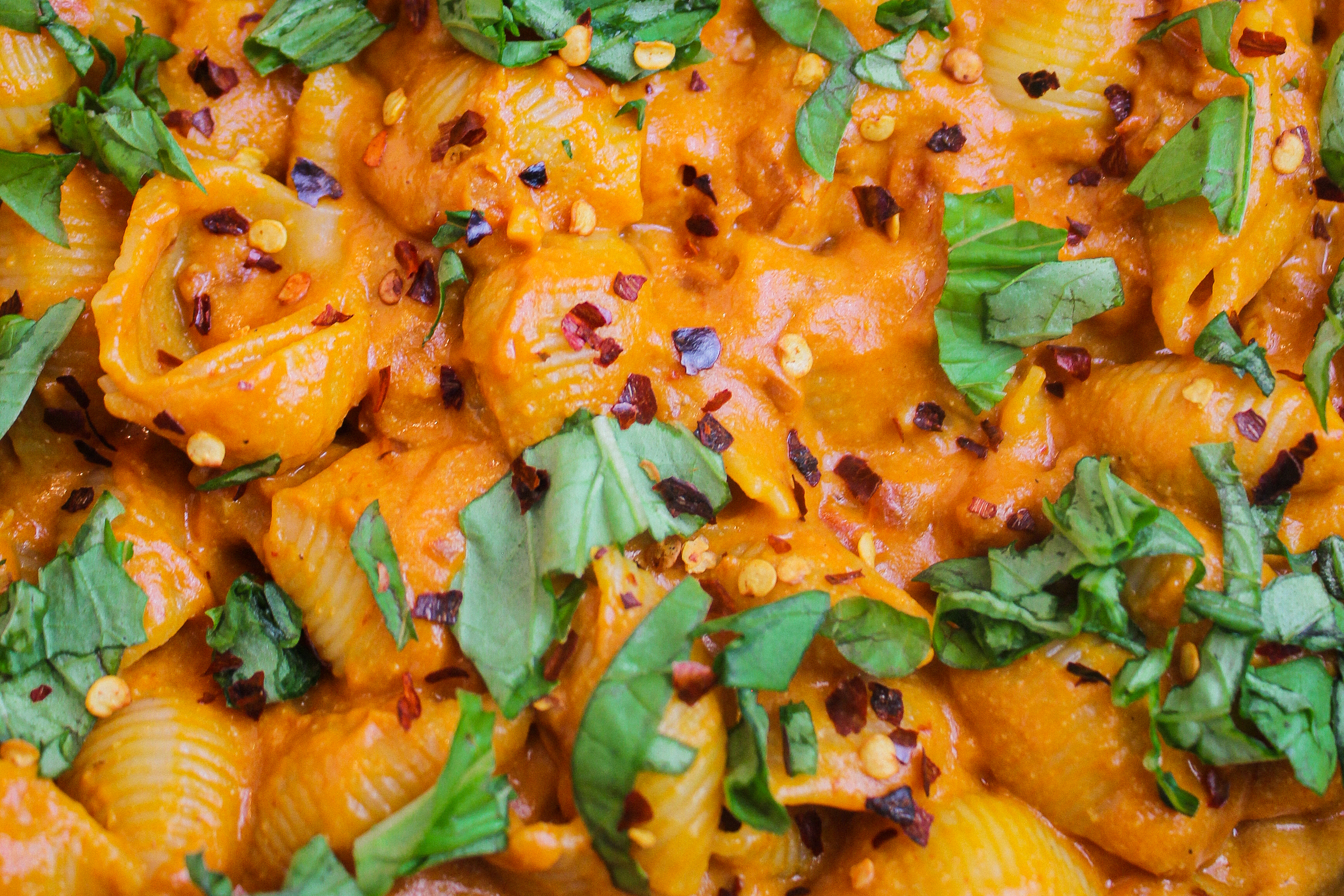 As you gear up for your next pasta night and start the search for a recipe… stop right here! HELLO! Our Spicy Basil Vodka Pasta is quick, indulgent, creamy and packed with flavour! It is sure to impress and take your pasta night to the next level. We’ve all seen Gigi Hadid’s famous Spicy Vodka Pasta recipe as it took over Instagram and TikTok… and we’ve definitely all drooled over it. It only seemed right for us to not only veganize it, but level it up too, bringing you our Spicy Basil Vodka Pasta!