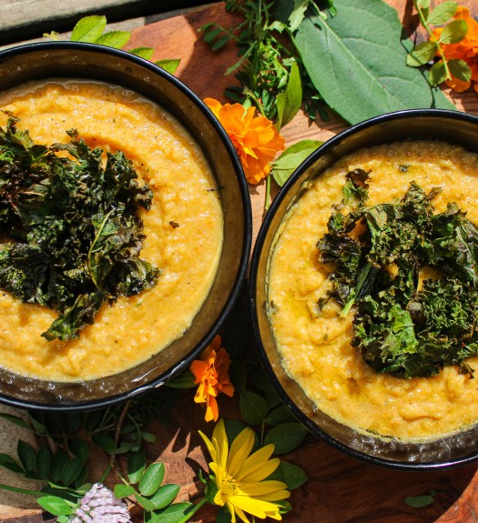 Sep 23, 2021 by Miriam & Zoey In dinner, lunch, main, soup Sheet Pan Creamy Roasted Cauliflower Soup with Crispy Kale Chips